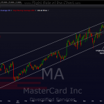 as is often the case, there can be more than one way to trade off a clear chart pattern, with channels being one of the best patterns to trade. as per my original post below, had things gone the other way (the market turning lower vs. climbing higher), MA would have likely broken below this well defined channel and provided a good short entry. of course we all know that the market did not break down and so my preferred long-side entry on this trade played out very well for anyone that took it. again, technical analysis is not perfect (or at least nobody’s analysis of the charts is perfect) but it never ceases to amaze me just how often, and how accurately these forecasted scenarios (i.e.-using the data on the left side of the chart to predict what will happen on the right side of the chart) play out time and time again.