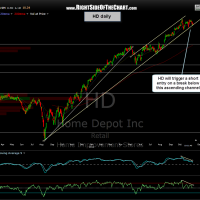HD will be added to the short setups category with a short entry to be triggered on a break of this ascending channel on the daily chart. The first two targets are listed although I may extend these targets depending on how this trade and the broad markets play out going forward.