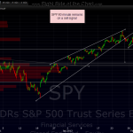 i’m sure CNBS will tag on some reason or another for the end of day rip but i’ve been trading and watching every tick in the markets long enough to know that the news almost always follows (or coincides) with the charts.  this bounce was triggered by the EUR/USD perfectly kissing and then bouncing off that first support level (S1) on the previously posted 4 hr charts.  we also had some of the key indexes bounce off their uptrend channels and when the volume in the markets is at extreme low levels like today, any amount of buying (or selling) can and usually does cause very fast rips like we had into the close, as the markets and the EUR/USD bounced off those support levels.