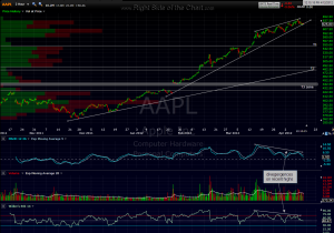 here’s a zoom-in of that 4 hour chart of AAPL that i posted yesterday. although most targets line up, i believe that i added one more target for anyone interest in trading on this time frame. i’m watching that upper-most trendline closely as a break below would likely be the catalyst for a move down to T1.