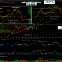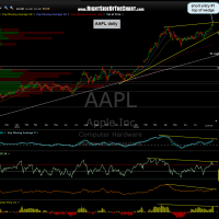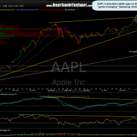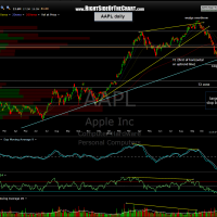 AAPL has hit the first and only target (565) on the long trade entered on Friday morning for a quick 9.5%+ gain. I personally sold all my shares including the last of my QQQ calls taken Friday as well. For those who took AAPL and would prefer to hold the stock (and I’m sure there are quite a few out there that do), I could easily see AAPL continuing higher to at least the 576 area, which is that grey horizontal resistance line as well as the 200ema on the updated daily chart below. As I only took AAPL as an oversold, bounce-off-key-support trade, I prefer to book full profits and risk giving some back holding out for a little more upside in the stock. In other words, I think that we milked the bulk of the favorable R/R out of this trade already, especially when considering the benefits of what I refer to as velocity in trading. I’m also winding down positions for the holiday shortened week as well. AAPL will now be removed from the Active Trades- Long category and I will likely be looking to add this trade back on as a short just below the 576 area, maybe even sometime this week.