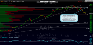 here’s the updated 60 minute chart for AAPL showing a couple of overhead resistance levels (R1 & R2). for anyone who didn’t take profits on the active short trade early today, consider a stop on a solid move about that R2 level. AAPL finished the after-hours session just shy of that R1 level but i do believe that R2 is the more significant level of the two and very well could provide another objective short entry.