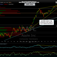 However, be advised that we can easily bounce next early week also as the 60 minute charts index covered in the video last night and today did indeed manage to hold the line where they needed to in order to keep those bullish divergences intact (not to mention the SPY bouncing off the bottom of it’s channel & the QQQ completing the throwback into it’s channel). The updated daily charts on AAPL, QQQ, & SPY below illustrate how this might play out. Best to keep things light/hedge going into the weekend if you are unsure of what to do.