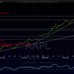 here’s the updated 120 min (2-hour period) chart of AAPL along with the previous 120 min charts behind it. looks like prices have clearly broken below the first uptrend line and although i said that a candlestick close below on the 4-hour chart would be the official sell signal, i’m just going to go ahead an make it an official short trade now. i’m not shorting it personally, at least not at this time but as i mentioned previously, i’m using select QQQ derivatives (QQQ puts and a TQQQ short) in lieu of AAPL but also as a play on the recent breakdown of the QQQ on the daily chart on april 4th.