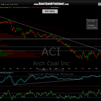 if you are in the ACI long trade, please note that i have added a new target (new T1) at 9.25. the previous target zone is now T2 (12.70-13.10). consider raising stops to entry. i continue to favor taking quick profits on longs and prefer wider stops and higher targets on the swing short trades and as such, i currently favor T1 on this trade. previous and updated daily chart below: