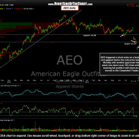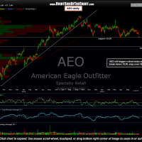 AEO triggered a short entry back on June 24th on a break below 18.00. As I didn’t personally take this one, I missed the fact that the first and only target (16.25) was hit on Monday with the stock actually gapping slightly below it to open at 16.20. When a stock exceeds a profit target on a gap, it is the opening price that a standing sell order (for longs) or buy-to-cover order (for shorts) will be filled at & so AEO was technically completed for a 10% gain on the opening gap on Monday. However, for anyone still in the trade, the stock made a large gap lower again today and is currently offering another chance to exit for a 16.2% gain, which I would suggest booking profits if you have not done so. As the final target has now been hit & exceeded, AEO will be moved to the Completed Trades category. Previous & updated daily charts: