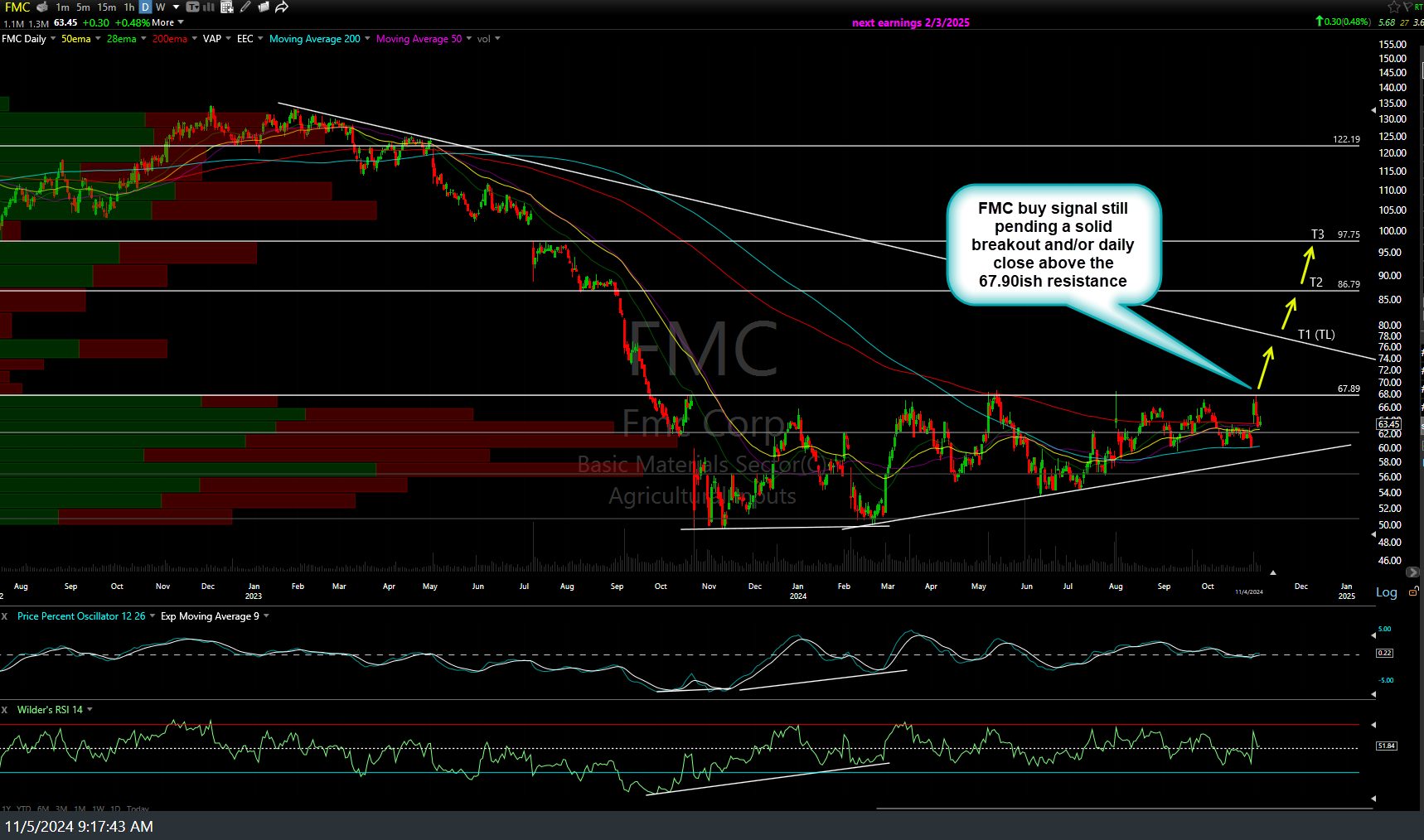 FMC buy signal still pending a solid breakout and/or daily close above the 67.90ish resistance.