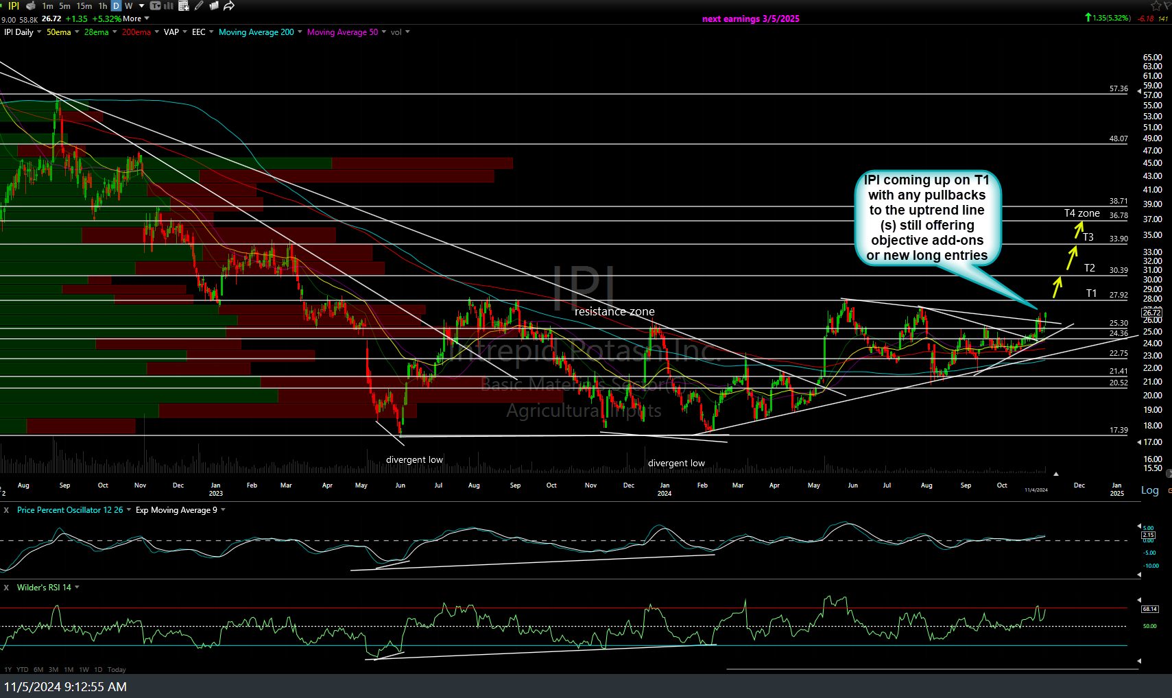 IPI coming up on T1 with any pullbacks to the uptrend line(s) still offering objective add-ons or new long entries.