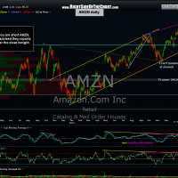 Just an FYI for those in the AMZN short trade: The stock is scheduled to report earnings after the close tonight so make sure that your position size is commensurate with your risk tolerance and trading style. Many traders will close positions before a scheduled earnings report as stocks will often experience large gaps in either direction following their earnings release. Although at times I will close a position before earnings (typically if I have already have significant embedded gains and/or the stock is near one of my final profit targets, such as the recent NFLX long for example), as a general rule I hold my swing trade positions through earnings as it has been my experience that more often than not, the future earnings and outlook for the company are already priced into the charts.