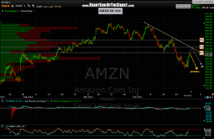 here’s a 60 min chart of AMZN with some overhead resistance levels, as well as my primary and alternative scenarios. i am adding to my position here and will only become concerned if the R3 level is taken out.