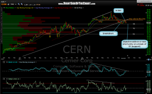 the CERN short still looks good and will be looking even better once/if that S1 (support level) gives way. a tight stop level is noted on this updated chart (orange line) but as this trade is still profitable, a swing trade targeting T2 might give it some more room.