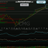 i could have sworn that i had CMG on as an active short but must have inadvertently removed it. i was an active trade earlier this year that was stopped out once or twice but has since broken down from this multi-year uptrend line (2-day chart), did a quick re-test and never looked back. still plenty of meat left on the bone on this one so i am adding it as both a short set-up and an active trade. here’s the updated weekly and 2-day period charts with targets: