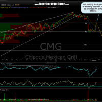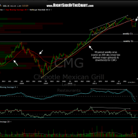 still looks like a very objective re-shorting or short add-on level as CMG re-tests the former first target support (now resistance) area. also note how well the 40 week ema (same as the 200 day ema) has acted as support and resistance in the past. CMG is just shy of re-testing that level from below now. consider a stop on a solid move above that ema (on a weekly close for swing traders). updated daily & weekly charts: