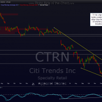from that level (9.80) the trade went on to hit the third target for exactly a 50% gain, where prices immediately pulled back as expected, digested the recent gains and overbought conditions, & then gapped above T3 resistance. prices then moved higher and drifted back, re-testing the T3 level (now support) several times before breaking below that support level on 8/2 and again on 8/3, which would have triggered a stop for most traders but probably not for longer-term investors holding out for T4 (final target). however, this morning, CTRN made a large gap down on a disappointing earnings report, opening at 13.05 which was below the former T2 (now support) level, definitely triggering any and all reasonable stops, still assuring a very profitable trade. the stock continued to plummet from the opening gap down and is now down about 25%, all the way back to the first target. this illustrates the benefit of using stops and raising those stops along the way on profitable trades to protect profits. CTRN will now be removed from the active trades and long-term trades category. charts in order as posted as for reference/educational purposes.