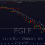 being the glutton for punishment as i am, i can’t help but peeking at trades i’ve exited to see how much money i’d still be making had i just gave in to that whole “greed” thing that drives so many investors/traders. actually, i do like to follow my trades thru until my final targets are hit, even if i booked profits along the way. for anyone who took the trade and is still holding, EGLE has now hit that final initial target that was posted (horizontal resistance level). keep in mind, this pattern, like most of the longs posted lately, looks like a solid bottoming pattern so EGLE, like so many of the other longs, can have a lot more upside over time. however, i usually list a series of initial targets as it is my belief that those levels are where the quickest, best R/R trades will come from. that does not mean i don’t think those trades go higher, just that the next 70% gain on EGLE won’t be as easy, fast, or without as much risk of failure/stopping out, as this 70% from the first downtrend line breakout was (DISCLAIMER: EGLE was trading at 1.20 when i found it, above the first breakout around .97, just wanted to clarify that). here are the charts in order as posted: