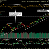 The first series of charts below are some of the major US stock indices, including annotations. Basically, most US indices, other than the Dow Jones Industrials, continue to make higher highs while nearly all key momentum indicators and price oscillators continue to print lower highs (i.e.- negative divergences). Such multi-month divergences were also formed leading up to correction in the 4th quarter of 2012. Divergences of such magnitude don’t always play out for a significant correction but more often than not, they do. This has been one of the most resilient markets in years, continuing to power higher despite many fundamental and technical caution signs yet the trends on all time-frames (including the short-term trend) are currently bullish. As such, the risk/reward for establish both long or short positions is not very favorable at this point. I will continue to post the most attractive trade setups, long and short, with my own preference remaining to be very selective on establishing any new positions as well as keeping my position sizing small until a more favorable risk/reward profile on either the long or short side develops.