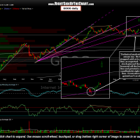 The first chart above is the screenshot from that video with the second chart showing not only today’s big earnings-induced pop in the stock, but a zoom-in of how well the stock acted off those aforementioned dual support levels. After the video, GOOG continued moving lower finally stopping cold exactly on on the first tag of the 61.8% Fib fan line on Oct 8th. The next day, GOOG made a very brief intraday pierce of that Fib support line to make a perfect kiss of the horizontal support line just mere basis points below. From there, the stock quickly reversed, closing the day right back on top of the Fib fan line and never looked back. Again, hindsight only in the fact that I did not personally take GOOG but a good educational example of how multiple support levels, particularly intersecting trendlines, horizontal support levels, Fibonacci retracements or fan lines, etc… can be use in conjunction as dual (or triple) support levels help increase the odds of a bounce once those levels are hit. As a side note, from here I don’t have much of a read on the stock. As GOOG is now trading at a new all-time high, there is not any overhead resistance other than another possible high-level backtest of the 38.2% fan line. I definitely wouldn’t chase GOOG here nor would I bother shorting it unless/until we get some type of high-probability reversal pattern over the next week or so.