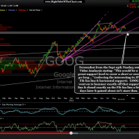 In these final charts, I just wanted to highlight an nice example of technical analysis working. For the last several months, I discussed in detail (in several of the market videos posted on the site) how well the Fibonacci fan lines on the daily chart of GOOG have acted as support and resistance. In the recent Nasdaq 100 Video Analysis posted on Sept 25th, while GOOG had just recently rolled off the backside resistance of the 50% Fib fan line and was moving lower, I stated that the 61.8% fan line along with horizontal support line that I drew in that video would be “…a great support level to cover a short or even go long…”. Let me be very clear that I did not personally buy GOOG there, nor did I add it as an official trade idea. I just wanted to impress the fact that I often cover many trade ideas in the video updates on the site (which are not always added to the trade ideas category) but more so I just wanted to highlight this as an example of the beauty of technical analysis.
