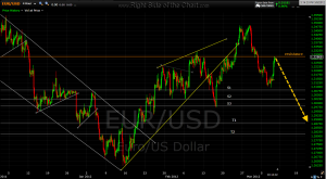 this is the 4 hour chart of the EUR/USD. i’m thinking somewhere along these lines, the minor zig-zags along the way not included here of course. if so, then next week should be interesting. i will say that the intraday currency charts can be very difficult to call, as we have, by their own admission, unprecedented currency intervention/manipulation in full swing by the global central banks. however, take a step back and view the $USD on a daily or weekly time frame and the dollar continues to be in unmistakable uptrend within what would also seem to be the latter stages of a multi-year basing process as i’ll illustrated via the weekly $DXY charts recently.