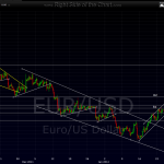 i’ll be interested to see what happens with the $USD and the EURO in the next few days. US jobless rate numbers easily beat expectations today. doesn’t much help support uncle ben’s case for continued debasement of the $USD via the much anticipated, and widely expected QE3. does the fed start to ease off the gas as the economy improves, hence adding less then the expected (or subtracting) liquidity from the system? who knows? certainly not me. from both a technical perspective (see charts below) and the fundamental reasoning i made above, i wouldn’t be surprised to see so strength in the $USD/weakness in the EURO. if that does play out, will a strengthening dollar be a drag on stock prices as it often has been in the past? regardless which way we go, i will be looking to add some more set-ups over the weekend and if i see anything that stands out today, i’ll post it. daily and 4 hour charts below: