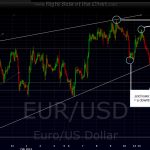 here’s something else that i’ve noticed on the EUR/USD. on my EUR/USD daily chart, i’ve had the wedge pattern (yellow trendline) for months, well before the pattern broke down. then a couple of months ago, another blogger had brought to my attention this possible head & shoulders pattern (blue annotations). although i doesn’t fit the usual profile of a H&S as a topping pattern, as the pattern did not form after a substantial uptrend it still could, nonetheless, play out as so many other technical patterns that have lacked the proper criteria have in this thinly traded market that is clearly only being played via retail and institutional traders right lately (the retail public has long exited this market).
