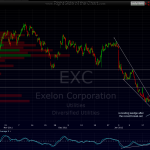 EXC has fallen back after entry and is a current trading a little below the daily support line. currently, EXC is re-testing the falling wedge so i am still holding my long position, expecting a successful re-test (and subsequent bounce) from around current levels. i’m watching to see of EXC can manage to close back above this support level, as the move thru it today help flush out the remaining weak-hands on the long side and draw in some late-comer shorts, setting up for a nice bounce/short-squeeze. again, that all depends on the stock not dropping much further and preferably closing at or back above the daily support line. otherwise, i may stop out before the close today.