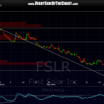 with all that being said below about each trader determining where to set their own stop-loss orders based on their own unique trading plan, profit targets and risk tolerance, i will continue to post objective stop levels based on the technicals for many of the trade ideas posted here. here’s a 60 minute chart of FSLR showing a couple of objective stop levels; a tight stop just below the uptrend line and a more liberal (loose) stop based off that horizontal support level.