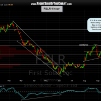 FSLR is up about 6% on the day and trading right around the resistance level pointed out on the 4 hour chart, where the odds of a pause or a pullback are likely. now for a swing trader who is targeting one (or both) of the primary targets, T1 & T2, this resistance level will most likely only prove to be a minor speed bump en route to those targets, assuming they are hit. therefore, a swing trader or longer-term investor shouldn’t be overly concerned with such a level. however, considering this trade is already up about 9% from the breakout level within 24 hours, a more active trader might consider booking partial or full-profits here in order to capture those quick profits and redeploy those funds elsewhere, maybe even back into FSLR once the stock has either pulled back to an objective re-entry level or maybe once the stock has clearly put that resistance level in the rear-view mirror.