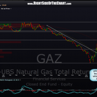 the natural gas etf, GAZ, recently made a new low (bearish) but quickly recovered and has remained above that level (bullish). however, prices are still just barely above that support level and anyone interested in this set-up (which has not yet triggered) should be aware this is a high risk, bottom catching play in a very volatile etf. therefore, be careful with your position size if you decide to take it. i will also add this set-up to the long-term trades category as although it is not yet an active trade, it does have the potential to be a very good long-term trade IF it puts in a bottom here and prices begin to move higher. therefore, a long-term trader or investor could consider scaling in around current levels but best to wait for a break-out of this 4 hour falling wedge pattern (which is the official trigger for the trade), while using a stop not too far below the recent lows. the first target on the daily chart corresponds with the target on the 4-hour chart but the additional horizontal lines could become targets if this trade were to begin to play out.