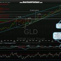 a couple of the previous weekly charts on the active GLD short with the updated chart last. prices have been hugging T1 support (lower channel uptrend line) for over 6 weeks now and i still favor additional downside but we need to see that support level break first to increase the odds of any of the additional downside targets being hit.