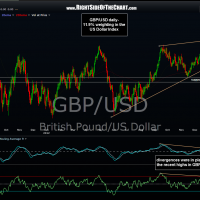 Here’s a quick look at the 3 largest currency pairs in the US Dollar Index. At 57.6%, the EUR/USD has, by far, the largest impact on the $USD while the next two largest pairs, USD/JPY & GBP/USD make up another 25.5% if the index. Therefore, these three pairs alone comprise over 83% of the US Dollar index. Even if one doesn’t trade currencies but only equities, charting these key pairs as a supplement to your market analysis can often be advantageous in determining the timing, scope and duration of the existing or next major trend. Note: the target listed on the USD/JPY chart below was the previous initial target from the falling wedge breakout & retest shown, not the current price target.