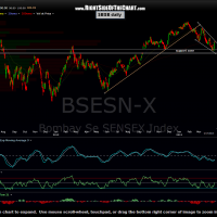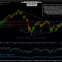 Although it took over two hours of analysis and annotations to create these charts, with a few clicks of the mouse you should be able to travel around the world to view nearly all of the major global equity indexes from a technical perspective in under a minute. All of the indexes below are shown with the daily time frame chart first followed by the weekly time frame, except for the $HKHS, in which the weekly chart was substituted with the more significant monthly chart. Click on the first image to open, then click on the right-hand side of each chart to advance to the next one or left click to go back to previous chart(s). The following indices are shown in this order: $SPX (S&P 500), $TSX (Toronto), $BSE (Bombay), $SSEC (Shanghai), $HKHS (Hong Kong), $NIKI (Tokyo), ($DAX (Frankfurt), $CAC (Paris), and the $FTSE (London).
