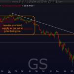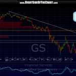 i just realized that i have not updated the GS short set-up posted back on march 21st (2nd chart below) with any follow-up charts or notes, although i did add it to the active trades category back then. since that post, GS went on to hit that resistance level (orange line), turned down and fell all the way back to re-test the primary downtrend line. my apologies for not making any follow-up posts to that set-up, both when prices hit the resistance line (objective entry) or adding targets once the trade became active but fwiw, i think that anyone still in the trade will get a chance to cover at lower levels. the two horizontal support lines below prices on the update chart should provide additional exit points for the trade although GS is still only about 3% off the recent low should one want to book profits or lower stops here. as i did not post targets with the original set-up, other than showing that single horizontal support line & downtrend line, i will not move this to the completed trades category at this time. in fact, here’s some potential eye-candy for anyone still in the trade: 60 minute chart showing a possible head & shoulders formation in the final stages of putting in a right shoulder. therefore, i will keep GS as an active trade and also add as a trade set-up which would trigger a new short on a break of the neckline on the 60 minute chart.