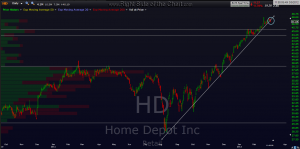 HD looks ripe for a pullback to at least the first target on the daily chart below. aggressive traders could short here on the trendline break while a more conservative entry would be on a confirmed close below the trendline.