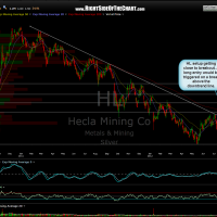 For reference, I have included the chart on the previous long trade on HL just before it broke out and shot up well over 40% where it stopped and reversed at the original final target (although I decided to book full profits once the third target to protect the gains). That goes to show that the gains in this sector come quick and plentiful at times but that can, and often does, cut both ways. Make sure to only take trades that fit your specific trading style and risk tolerance and do not become complacent with your stops. Charts in order as follows: Daily chart from the previous trade, just before HL triggered an entry, then the updated (today’s) daily chart, followed by the updated weekly chart.