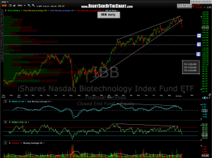 i continue to believe that we are still in the early stages of that reversion to the mean that i’ve been discussing lately, whereby stock prices must now play a painful (or very lucrative, depending on which side of the trade you are on) game of catch-up to the fundamentals which have clearly been deteriorating for most of the year. until i see convincing evidence from both a fundamental and technical perspective to the contrary, i will continue to use any fed-induced rallies as opportunities to tactically add short exposure (e.g.-shorting bounces back to resistance levels) while preferring the larger, swing targets on most trades. updated IBB daily chart shown here (still one of my favorite sectors to short at this point):