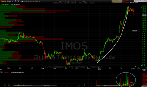 another recent member of club parabola. i was a little too early on shorting this one a few weeks ago and was quickly stopped out but i re-shorted it today. parabolic moves like this more often than not end up giving back a lot of the latter-half gains in quick order. trades like this are only for very nimble, aggressive traders so DYODD and set your stops according to your own entry and trading style/rules if you take it. personally, i like to use small positions with relatively wide stops on trades like this but no less than a 3:1 gain/loss ratio from entry.