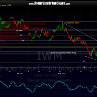 yellow horizontal lines have been added to these charts which show potential support and resistance lines. white horizontal lines were previous supports on the way down, which should now act as resistance on the way up. i would put the odds at pretty good that the market pulls back from at or near current levels with the major indexes short-term overbought at resistance. my target for a pullback is S1. QQQ & IWM 60 min charts below, SPY 60 min in previous post.