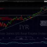 keep an eye on that initial support area that i marked on the IYR 60 min because if prices can break below it, i believe that would really increase the odds that this trade plays out to at least the first target. this remains one of my favorite trades right now but we must break below that level, and then the next uptrend line marked on this chart before we can say this one is safely out of the gates. consider stops not too far above the recent highs in IYR (lows in SRS), which would give the SRS trade about a 15% gain potential and about a 2-3% downside risk or a 6 to 1 R/R ratio, which isn’t bad. anyone not wanting to risk jumping the gun on this counter-trend trade could wait for the broad markets to break their 60 min uptrend lines although a lot of meat will probably be skimmed off the bone on the SRS trade by that time. of course, always trade according to you own style and risk-tolerance.