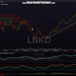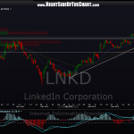 as i’m feeling a little better tonight, i’m am going to start posting the static charts of the new and existing trade ideas that i covered in the video update on monday evening. here’s the LNKD daily chart that i covered in the video. this trade provided plenty of time for an objective entry as it opened down just slight on tuesday morning, floundered around and even pushed back to nearly flat on the day before plunging about 7% to tag that uptrend line that i pointed out on the original chart. a nimble trader could have booked the quick profits there and recycled back into the trade on the bounce but for those still short, i still favor at least the top of the first target zone being hit. first chart is the screen capture from the video, next chart is today’s.