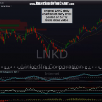 here’s a suggested stop level for the LNKD short, which is up big following it’s earnings release last night. yesterday, i mistakenly listed the break of the daily trendline as the entry. actually, the original entry on the trade was the morning after the may 7, 2012 trade idea video, where i first added it as a short around 111.48. the break of that daily uptrend line was the 2nd entry or add-on point to the short. therefore, this trade is still below entry but i have added this suggest stop level for those still holding out for T2. snap-shot of the original chart from the video (1st sell signal was that bearish abandoned baby candlestick formation) as well as today’s updated chart with the stop level: