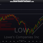 fyi- i just covered my LOW short in pre-market. LOW is nearly a point below the final target after reporting earning and as gives us a nearly 13% gain on the trade, i cancelled my standing buy-to-cover limit order that was just above the target and replaced it with a pre-market order to cover at 26.83 which has filled (and now prices are even lower). the is quite a bit of support below my target level & therefore, even though the stock is trading below my target (support level) i think don’t believe the R/R to remain short is worth it. in fact, my guess would be that the stock likely moves higher from current levels and moves back up to that target level during the regular session today. charts in order as posted below.