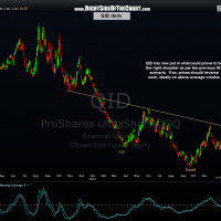 Today’s gap has also eliminated my primary scenario and put into play my previous alternative (now primary) scenario on QID. Again, any significant additional upside in the market (downside in QID) will begin to diminish the chances of this bearish scenario playing out. Previous & updated daily charts below: