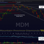 MDM has been taking some nice volume since breaking out of the descending broadening wedge pattern that i posted on feb 6th (click here to view post/notes on trade). since the distance to my primary target posted on the original chart is quite large (38% from breakout), i have added several sub-targets here for more active traders that like to trade around targets or any swing traders that may want to take partial profits along the way. these levels can also be used a levels to ratchet up your stops once the stock has clear those potential resistance areas, particularly if we get a reaction on or around those levels as that would further validate them. original chart and today’s below.