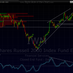 here’s the updated IWM 60 min chart. this is completely an intuitive/anticipatory trade as IWM actually broke out to new highs today (typically bullish) but i believe the odds are good that this breakout will fail today or tomorrow, producing a nice downside reaction once the failure become evident. disregard those stop level annotations, those were from the last short trade after the channel breakdown. although i haven’t had time to update the targets or minor support levels either, they should still be valid. i’ve also included a 15 min IWM with some fresh targets as well. more to come when i get a chance.