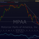 i usually try to make my trade update posts timely and relevant such as a trade set-up approaching the break-point level or having just recently broken out or maybe an existing trade hitting or approaching a target. MPAA is actually well in-between it’s 1st and 2nd targets but my concern is that these targets are quite far apart and the stock is up about 23% from entry and pretty extended in the near-term, especially without much, if any, consolidation or pullback since breakout other than a quick re-test of the downtrend line. therefore, consider moving up stops to protect profits or even booking partial profits, depending on your trading style and risk tolerance.