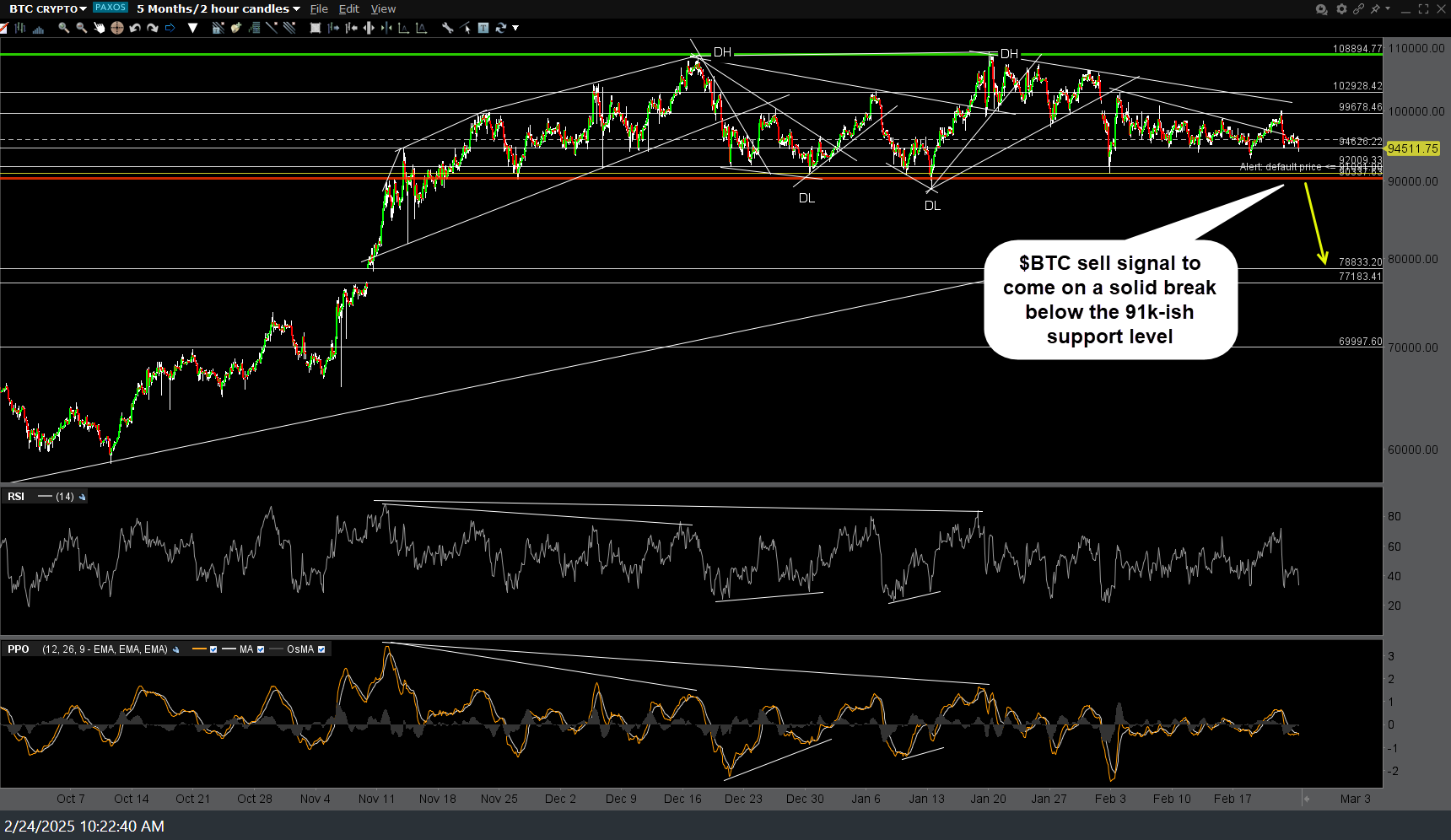 Also, keep in mind that MSTR is essential a proxy bet on Bitcoin, which will trigger a power sell signal if/when the 91,oooish support is clearly taken out (120-minute chart above.