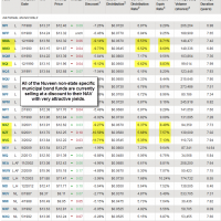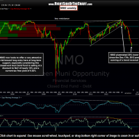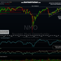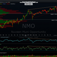 I plan to follow-up with some additional charts on the other sub-classes of fixed income soon but wanted to start with some potential swing trade candidates that may fit the bill for those looking for a relatively low-risk swing trade as well as longer-term traders or investors that might be looking for income producing ideas for some of their non-trading capital. In that December 17th fixed income overview, I covered the daily & weekly charts of NMO, a closed-end municipal fund managed by Nuveen Investments. As these previous & updated daily & weekly charts below show, NMO played out exactly as forecast with prices first bouncing off the highlighted support on the daily chart and then plummeting a whopping 20% (which is a huge drop for what is naively considered one of the “safest” investments by the general public). Most retail investors fail to fully grasp all the variables that affect fixed income investments such as changes in credit quality, real or perceived; changes in interest rates; the double-edge sword of using leverage to enhance returns (as is the case with most of these Nuveen Closed-end funds); etc…. Those chasing yield back then & not heeding the glaring warning signs on the charts, preceded to lose 20% on their principal over the next 7 months while receiving less than 3% in dividends…. not exactly the “safe” bet they thought municipal bonds were. With that being said, here are the previous & updated daily & weekly charts of NMO as well as spec sheet on the Nuveen non-state specific closed-end muni funds (which trade like ETF’s although they typically sell at a discount or premium to NAV).
