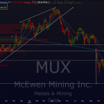 fyi- T1 was hit (to the penny) today so consider taking some/all profits if you haven’t already or at least ratcheting down your stops. this one could see T2 if GDX turns down at that resistance zone that i posted earlier and of course, MUX will have to break below T1 support as well.