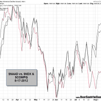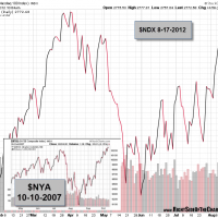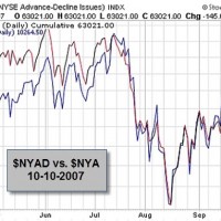 …are often doomed to repeat it. As just about every angle in market analysis has been covered at one point or another, I am going to save myself some time from re-typing what’s been already been said before. First read this article which was published literally one day after THE market top (both SPX & NYA) back on Oct 11, 2007: Lack of Stock Market Breadth Warns of Danger Ahead. I’ll then leave it up to you to view the following charts and draw your own conclusions. I focused on the $NAAD (Nasdaq Advancing/Declining Issues) instead of the $NYA charts shown back in October ’07 primarily because the divergence is most pronounced right now, plus the Nasdaq 100 in particular has clearly been the lead dog pulling this market higher. Remember, these are warning signs, not die-hard predictions of what will or must happen. I plan to write a bit on that soon.